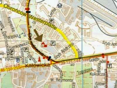 Lokalizacja: pomiędzy ul. Obrońców Westerplatte, a ul. Odrodzenia, na wzniesieniu, dobrze widoczny z ul. Obrońców Westerplatte